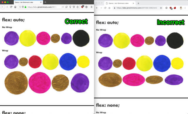 The best way to see the aforementioned bug in action is to load up Jen Simmon’s flex shorthand examples page in Firefox (correct), Chrome (incorrect), Safari (incorrect) and Edge (correct) for comparison.